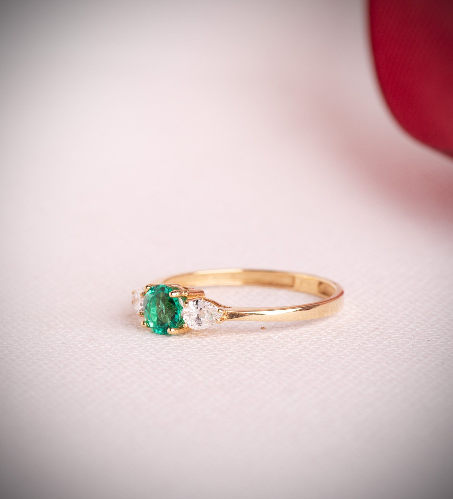 18K SORTIJA ORO AMARILLO DIAMANTES LABORATORIO TALLA PERA ESMERALDA RECRISTALIZADA 5 MM 0,48 QT 0,29QT. VS2 – E