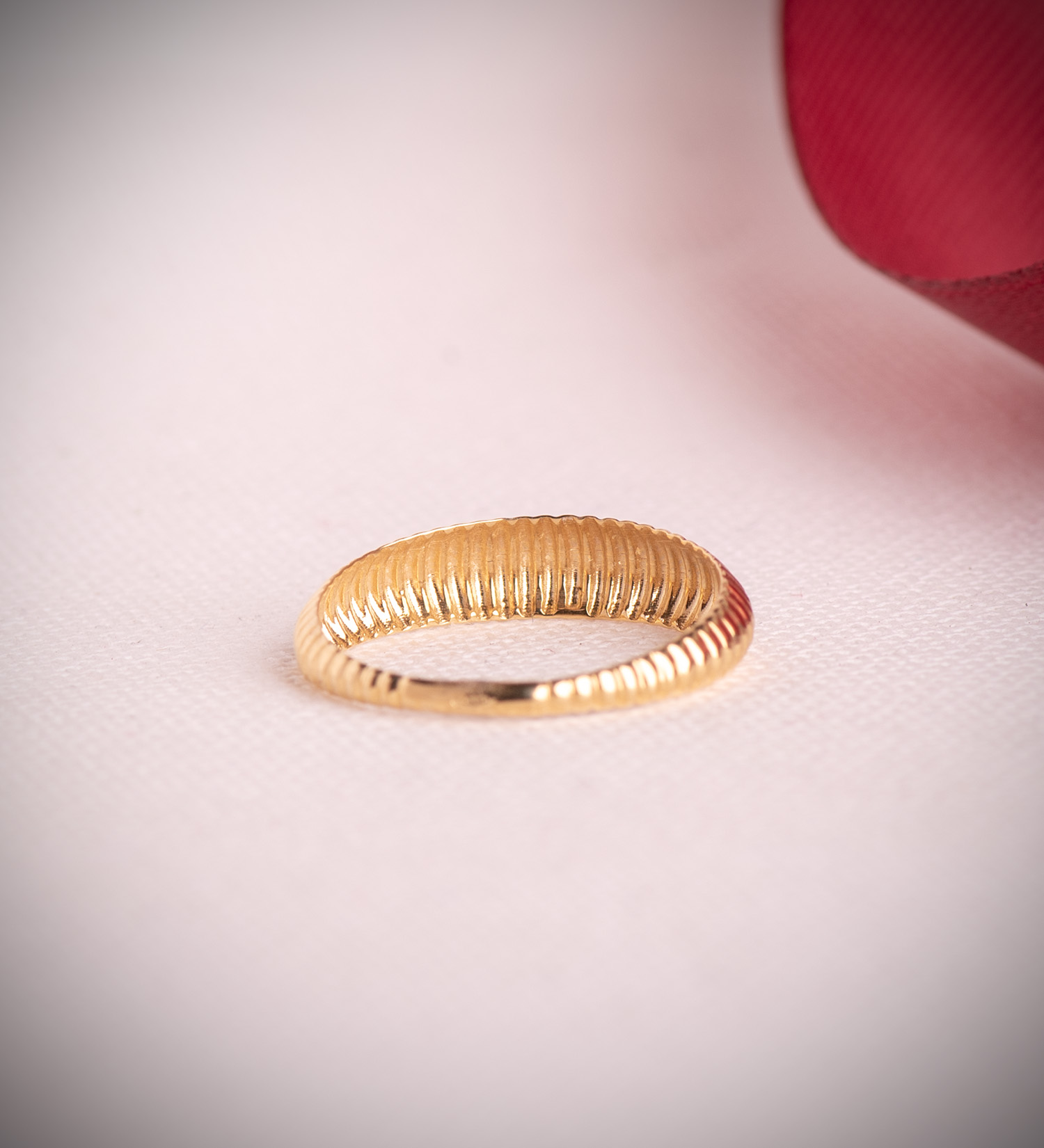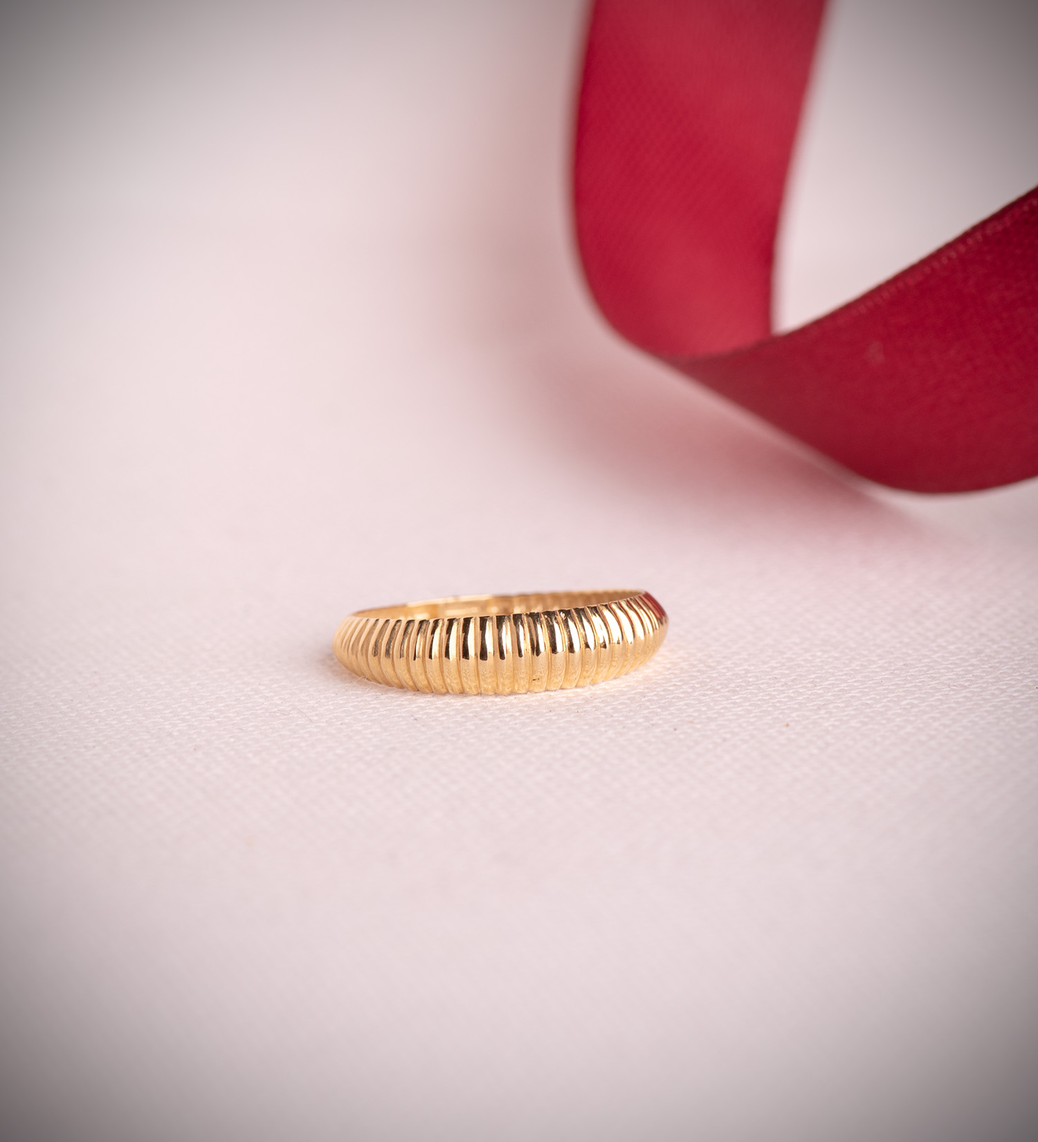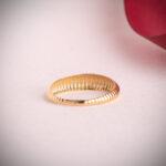 18K SORTIJA ORO AMARILLO LISA GALLONES EN DISMINUCION. ANCHO: 5 MM