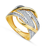18K SORTIJA ORO BICOLOR BANDAS CON CIRCONITA Y DOS ONDAS, ANCHO: 12 MM