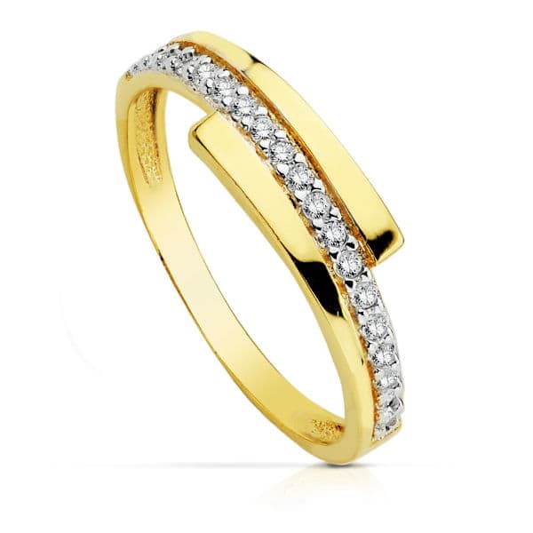 18K SORTIJA ORO BICOLOR CRUZADA CON CIRCONITA. ANCHO: 2 MM