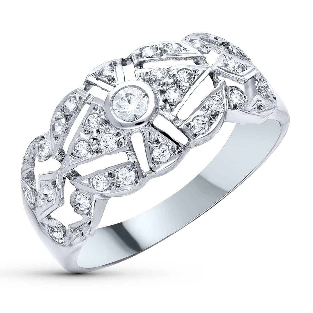18K SORTIJA ORO BLANCO CALADA CON CIRCONITA, ANCHO 10 MM