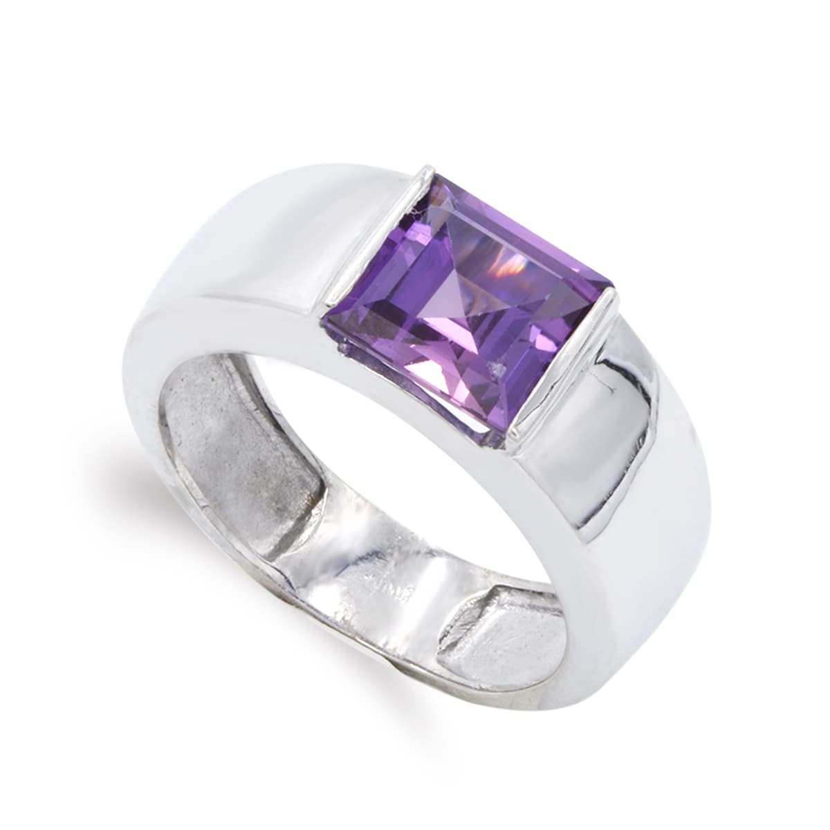 18K SORTIJA ORO BLANCO CON AMATISTA CUADRADA, ANCHO: 8 MM