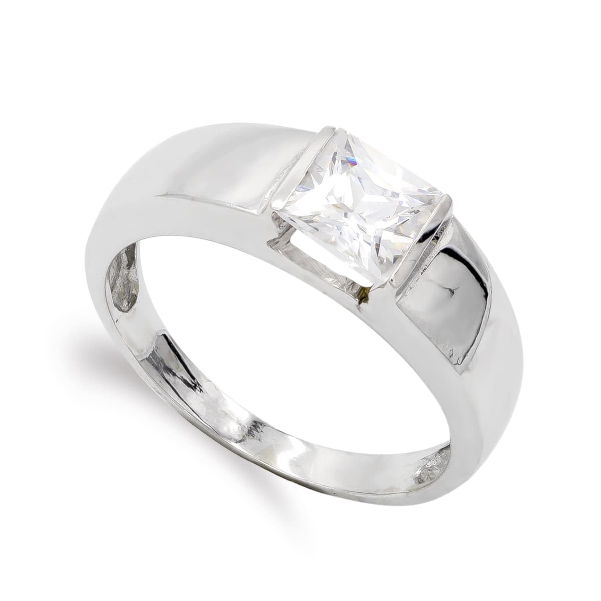 18K SORTIJA ORO BLANCO CON CIRCONITA CUADRADA, ANCHO: 6 MM