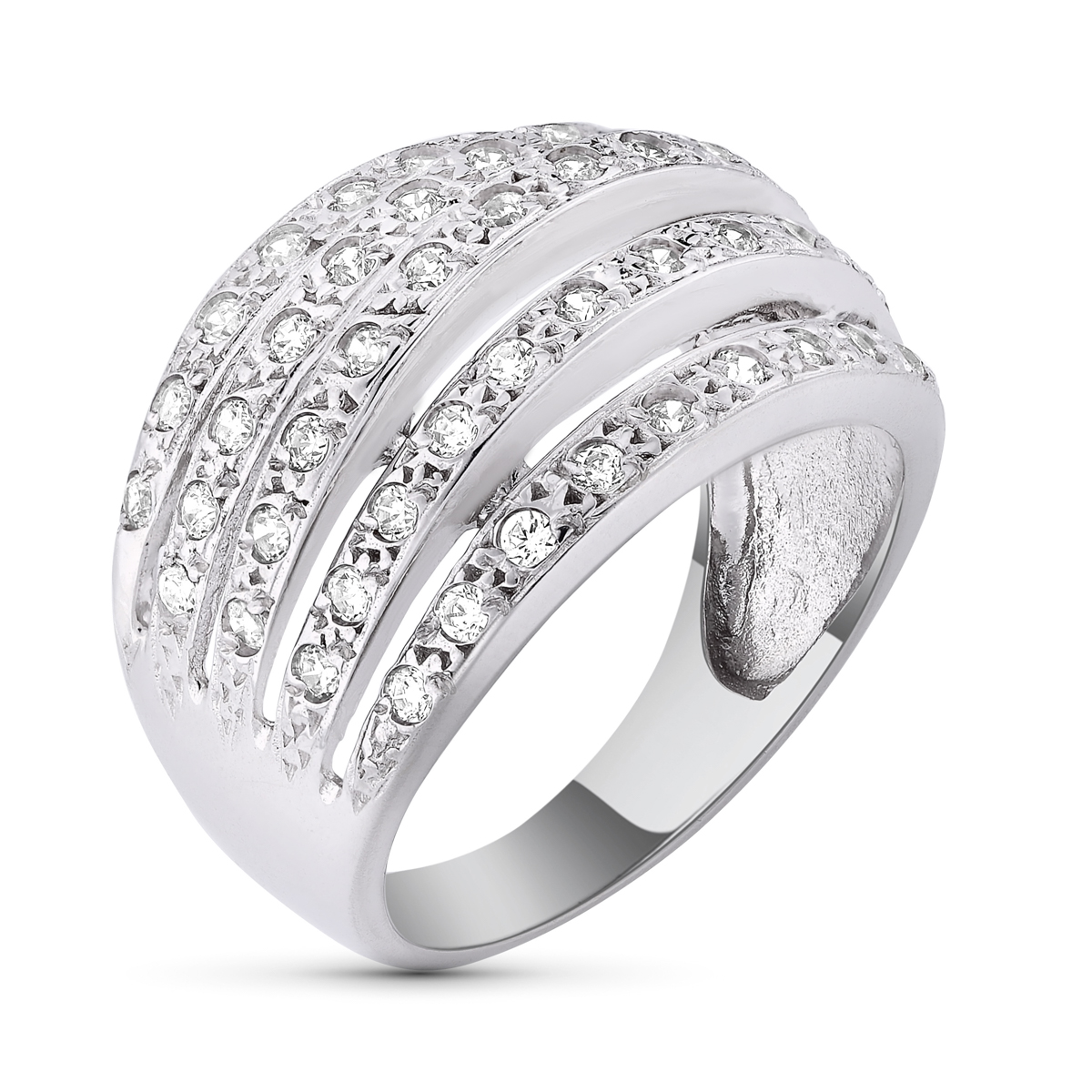 18K SORTIJA ORO BLANCO MACIZA CON CIRCONITAS, ANCHO: 15 MM