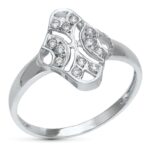 18K SORTIJA ORO BLANCO MOTIVO CALADO ROMBO 15X10 MM CON CIRCONITAS, ANCHO: 15 MM