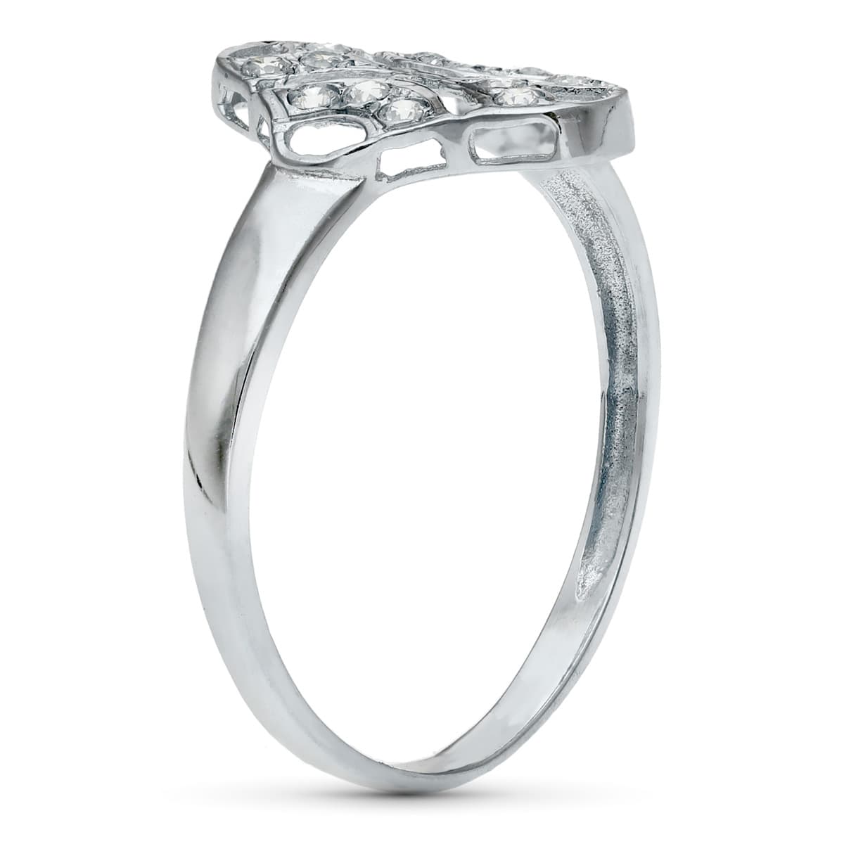 18K SORTIJA ORO BLANCO CUAJO CON CIRCONITAS, ANCHO: 8 MM