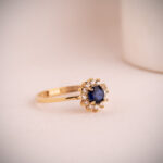 18K SORTIJA ORO BLANCO ZAFIRO DIFUSION 5 MM 0,56 QT Y DIAMANTES LABORATORIO 0,17QT. G – VS2. ANCHO CUAJO: 9,5 MM