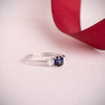 18K SORTIJA ORO BLANCO ZAFIRO DIFUSION 5 MM 0,63 QT Y DIAMANTES LABORATORIO TALLA PERA 0,29QT. VS2 – E