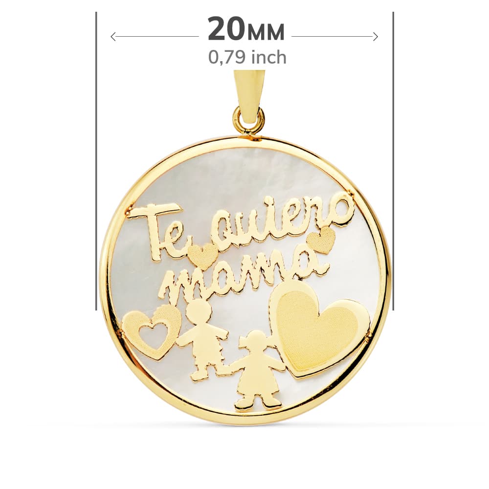 9K COLGANTE ORO AMARILLO MAMA NACAR NIÑO Y NIÑA 20 MM