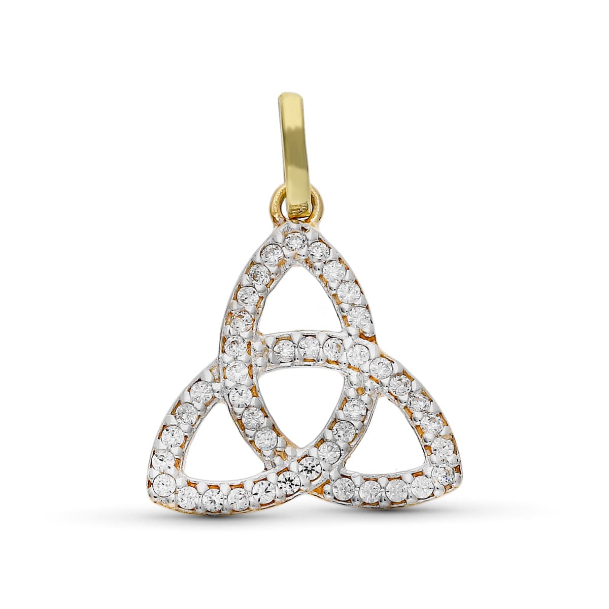 9K COLGANTE ORO BICOLOR TRINITY CON CIRCONITAS, MEDIDA: 16X17 MM