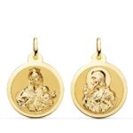 9K ESCAPULARIO ORO AMARILLO BRILLO VIRGEN DEL CARMEN Y CORAZON DE JESUS 22 MM
