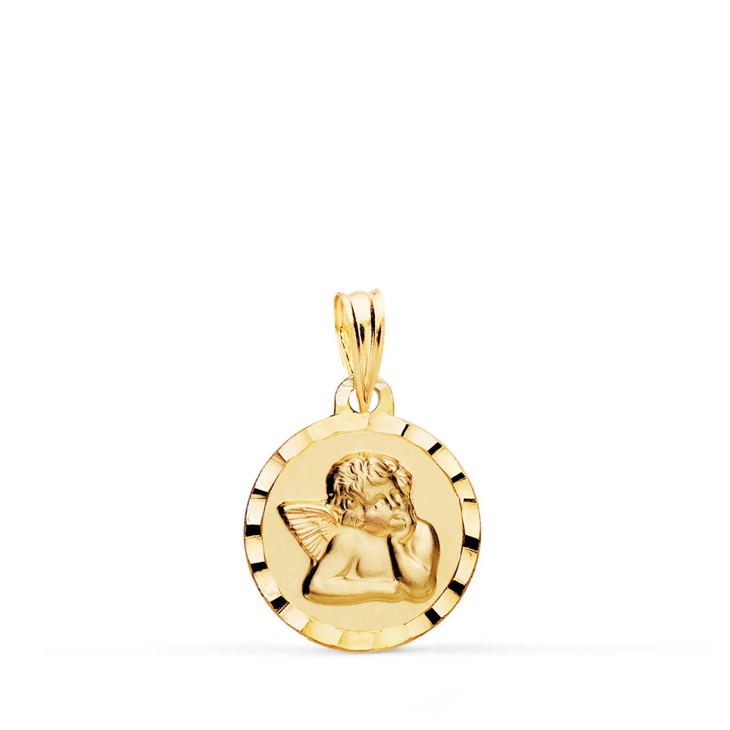 9K MEDALLA ORO AMARILLO ANGELITO BURLON BORDES TALLADOS 14 MM