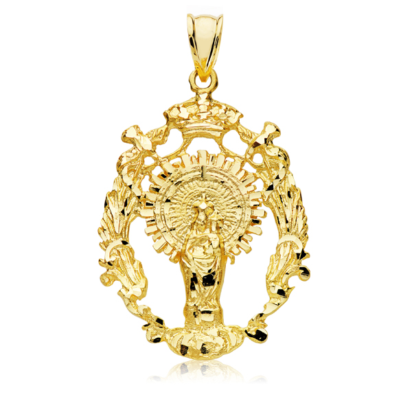 9K MEDALLA ORO AMARILLO ESCUDO VIRGEN DEL PILAR 35X28 MM
