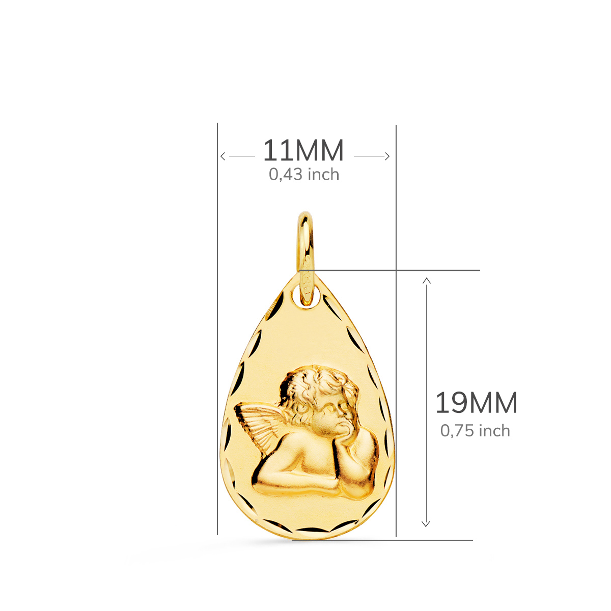 9K MEDALLA ORO AMARILLO GOTA ANGELITO BURLON TALLADA 19 X 11 MM