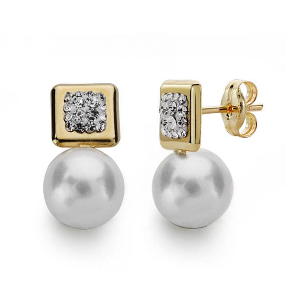 9K PENDIENTES ORO AMARILLO PERLA 7,5-8 MM TOTAL 14X8 MM CIERRE PRESION