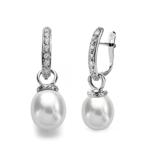 9K PENDIENTES ORO BLANCO PERLA 28X9 MM CIERRE CATALAN