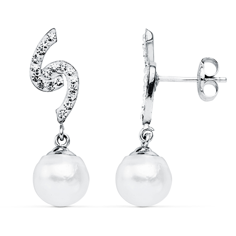 9K PENDIENTES ORO BLANCO PERLA 8 MM 24X6 MM CIERRE PRESION