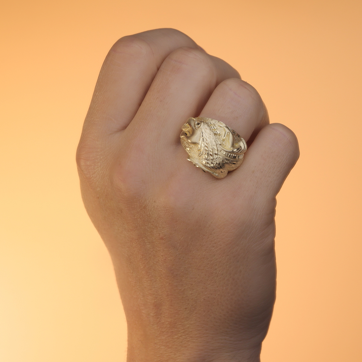 9K SELLO ORO AMARILLO CABALLERO TALLADO DRAGON ANCHO 22 MM
