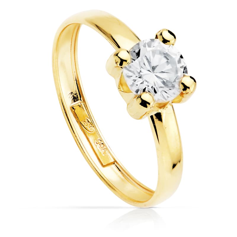 9K SOLITARIO ORO AMARILLO CON CIRCONITA EN GARRAS DE 6 MM