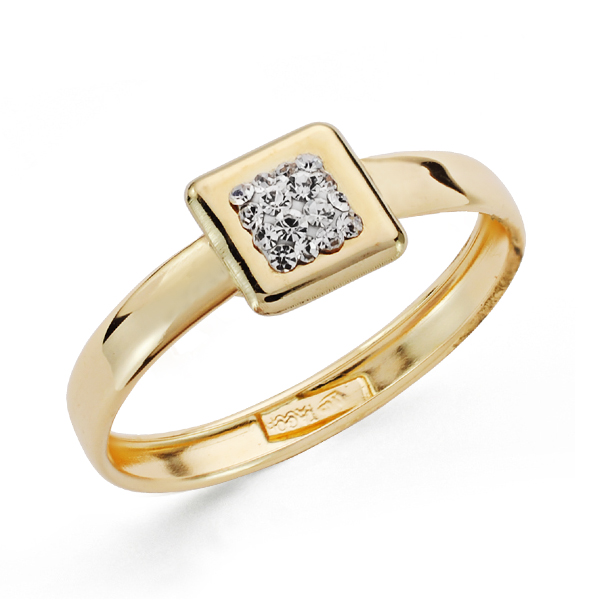 9K SORTIJA ORO AMARILLO CON MOTIVO CUADRADO Y CIRCONITAS, ANCHO: 6,5MM