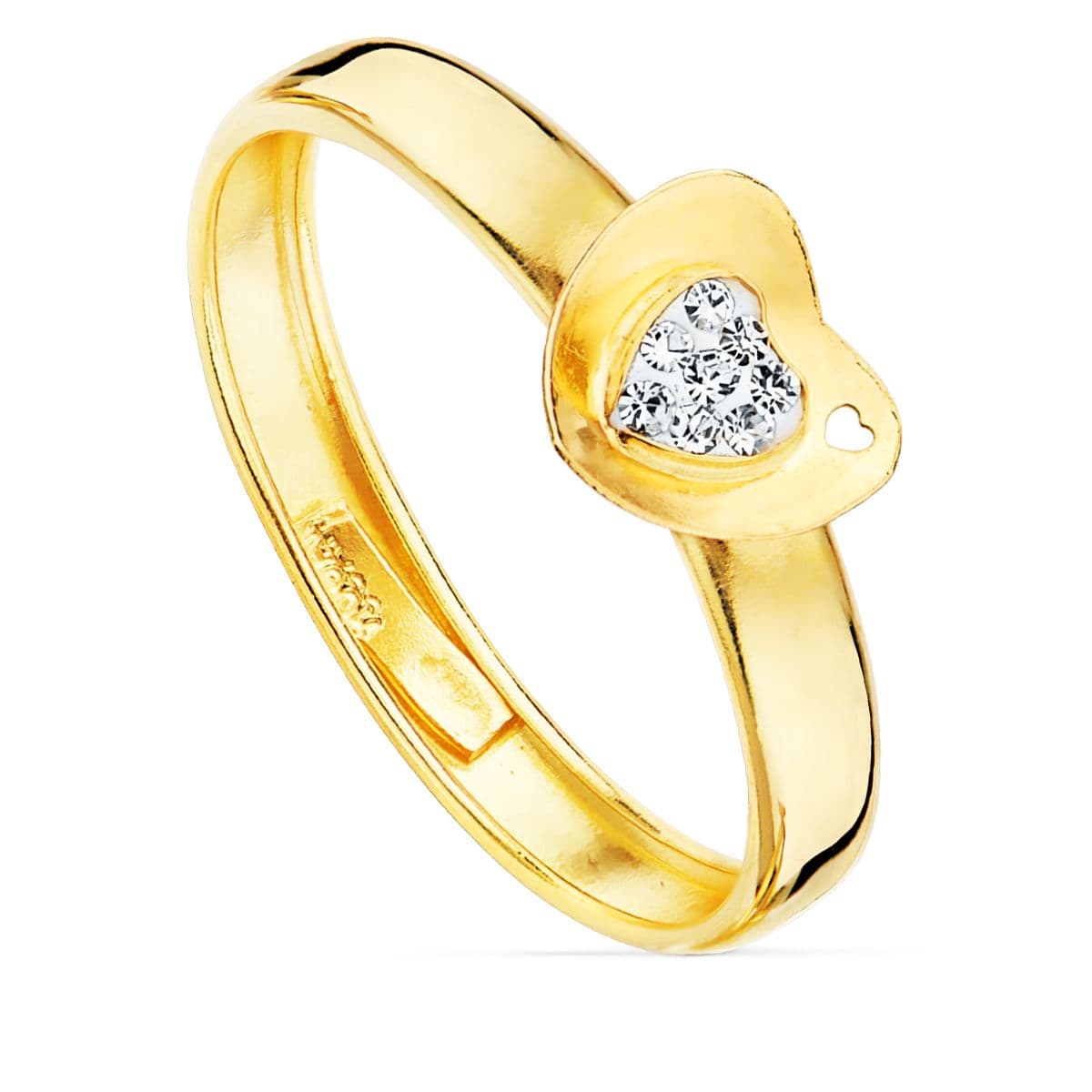 9K SORTIJA ORO AMARILLO CORAZON CON CIRCONITAS, ANCHO: 6 MM
