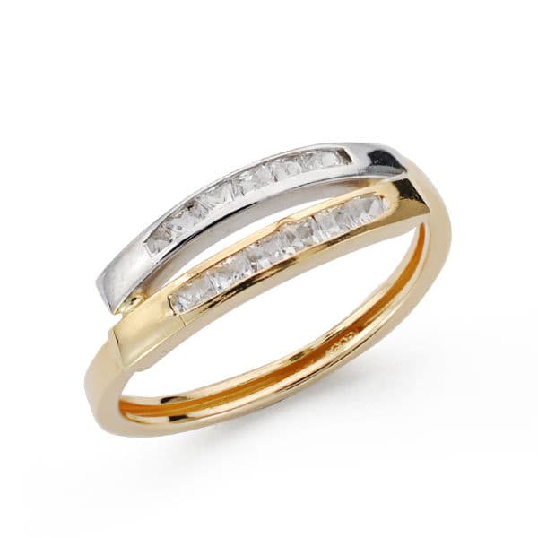 9K SORTIJA ORO BICOLOR BANDAS CON CIRCONITAS EN CARRIL, ANCHO: 5,5 MM
