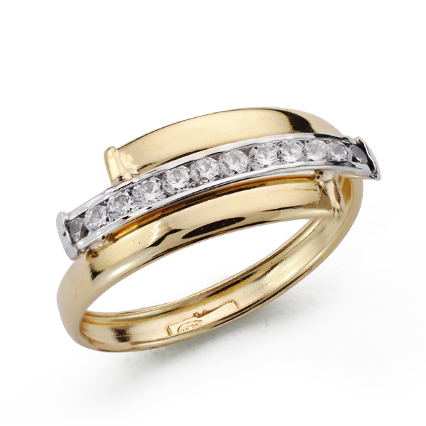 9K SORTIJA ORO BICOLOR BANDAS CON CIRCONITAS EN CARRIL, ANCHO: 7,5 MM