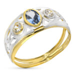 9K SORTIJA ORO BICOLOR DOBLE CUERPO CON CIRCONITA AGUAMARINA OVAL, ANCHO: 9 MM