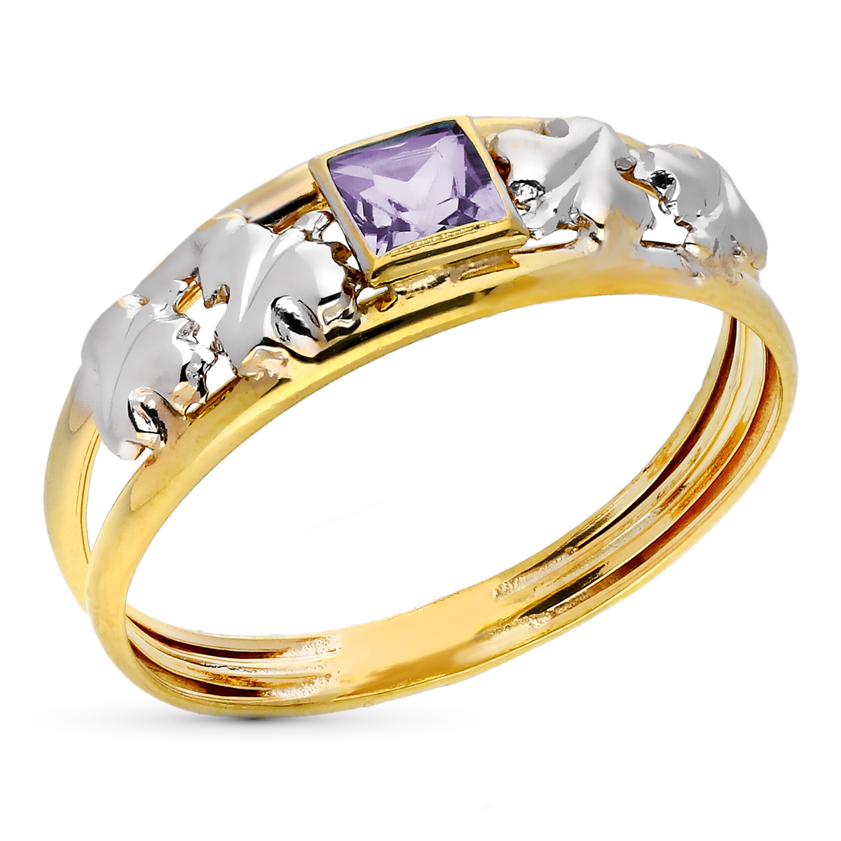 9K SORTIJA ORO BICOLOR DOBLE CUERPO CON CIRCONITA AMATISTA CUADRADA, ANCHO: 6 MM