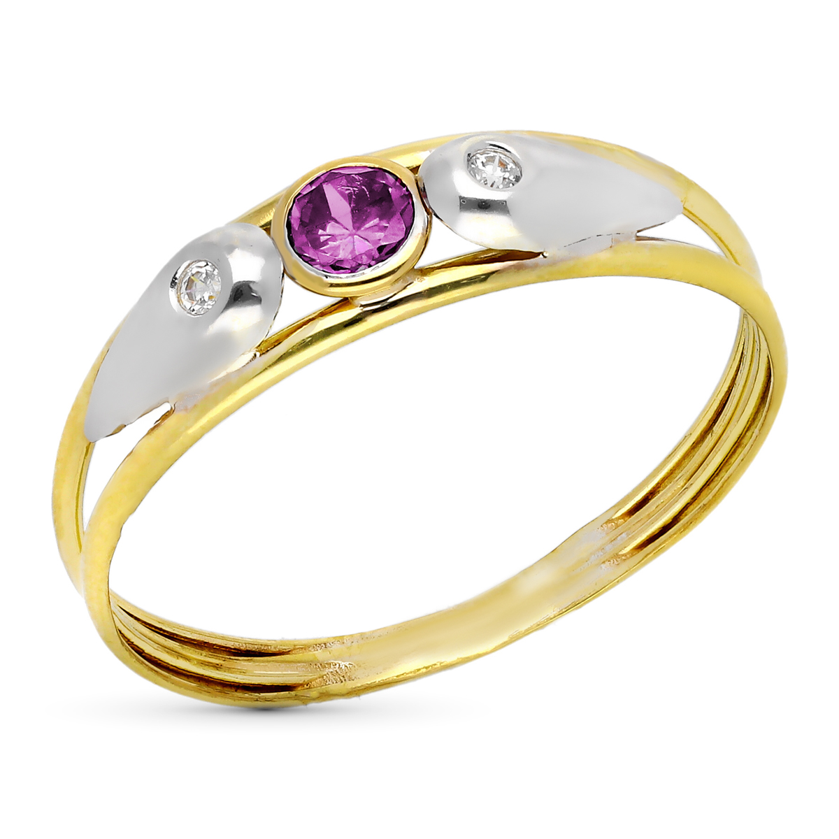 9K SORTIJA ORO BICOLOR DOBLE CUERPO CON CIRCONITA REDONDA AMATISTA, ANCHO: 5,5 MM