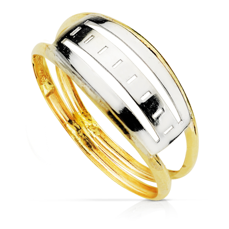 9K SORTIJA ORO BICOLOR DOBLE CUERPO CON MOTIVO CALADO, ANCHO: 7,5 MM