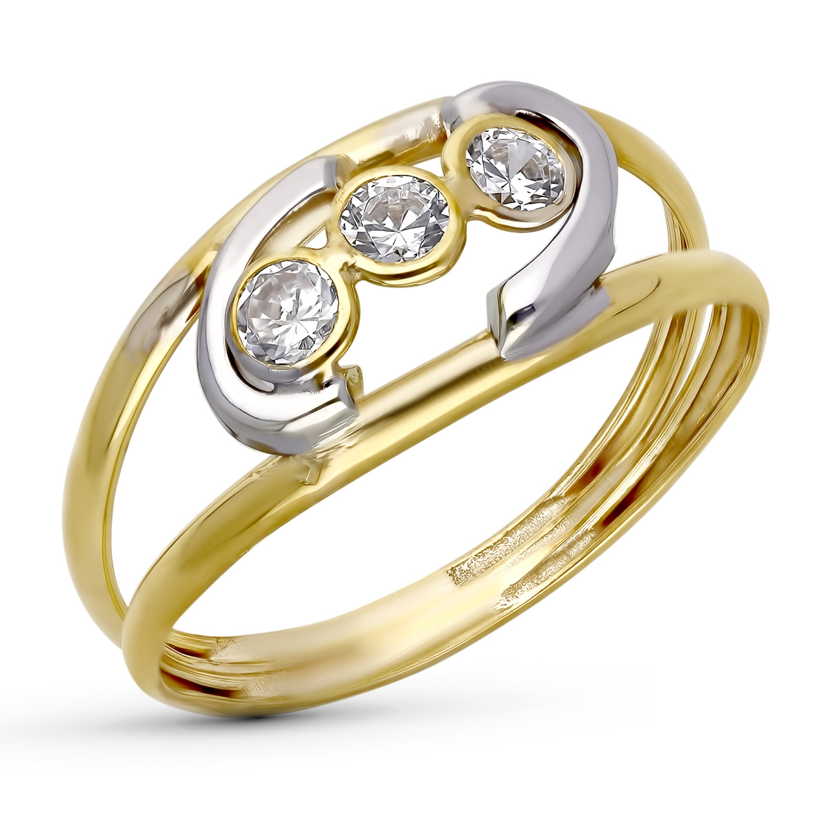 9K SORTIJA ORO BICOLOR DOBLE CUERPO MOTIVO CON CIRCONITAS, ANCHO: 8,5 MM