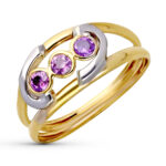 9K SORTIJA ORO BICOLOR DOBLE CUERPO MOTIVO CON CIRCONITAS COLOR AMATISTA, ANCHO: 8,5 MM