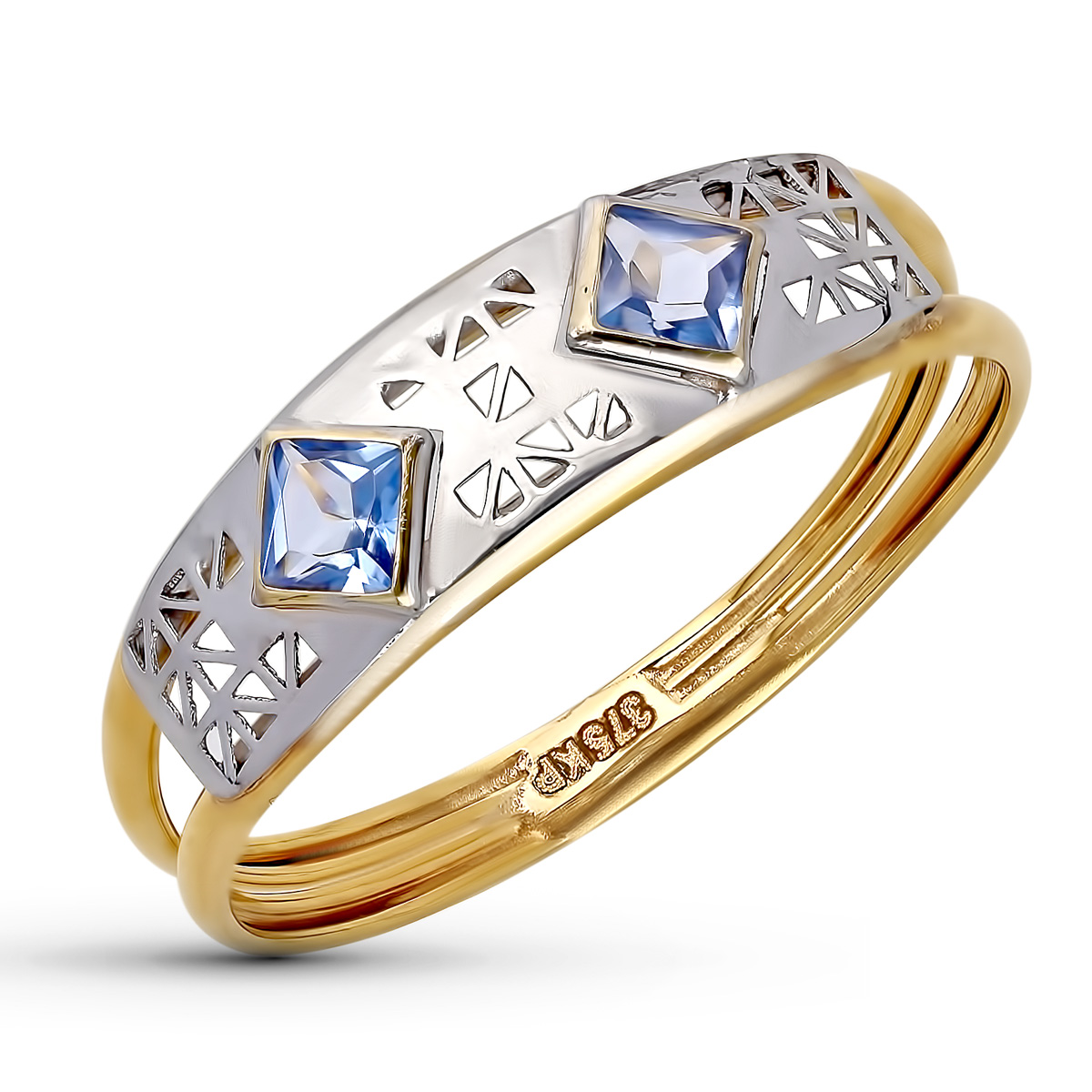 9K SORTIJA ORO BICOLOR DOS CUERPOS CON CALADO Y CIRCONITA AGUA MARINA, ANCHO: 5,5 MM