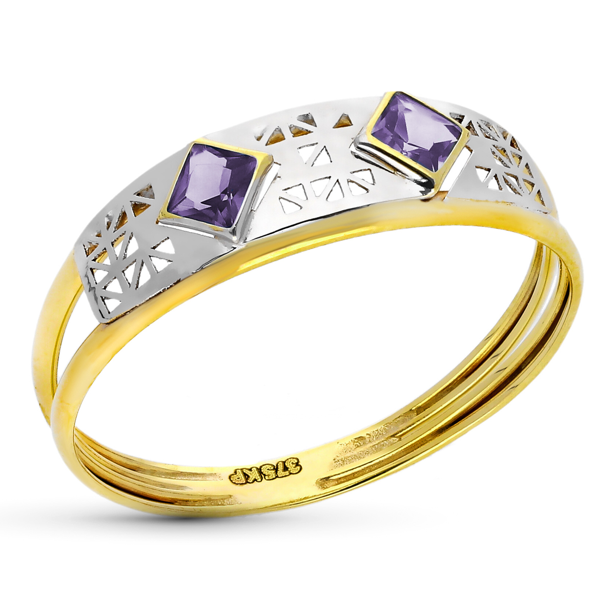 9K SORTIJA ORO BICOLOR DOS CUERPOS CON CALADO Y CIRCONITA AMATISTA, ANCHO: 5,5 MM