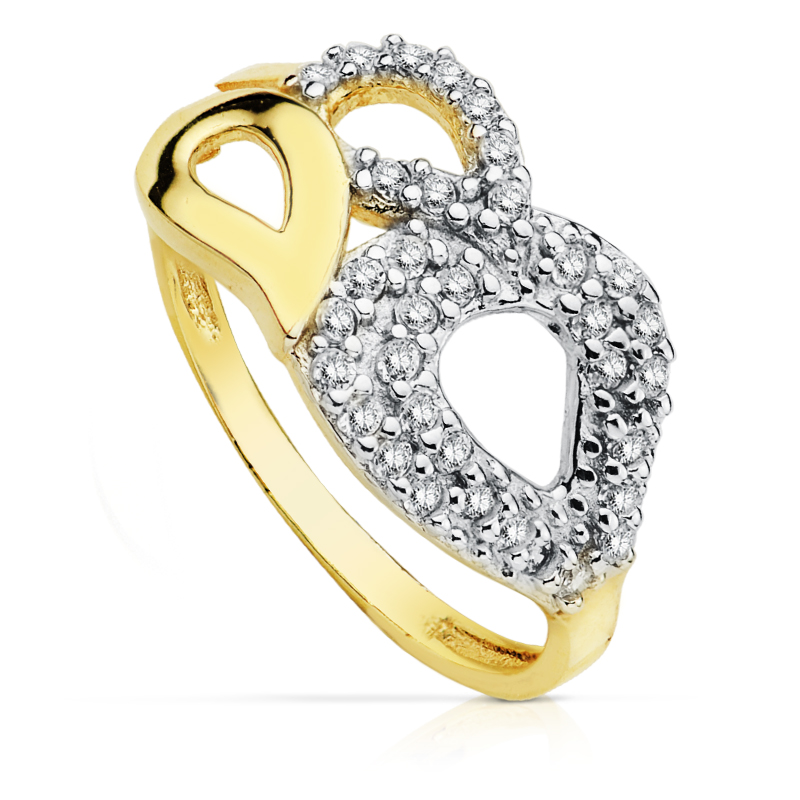 9K SORTIJA ORO BICOLOR MOTIVO CON CIRCONITAS, ANCHO: 9,5 MM