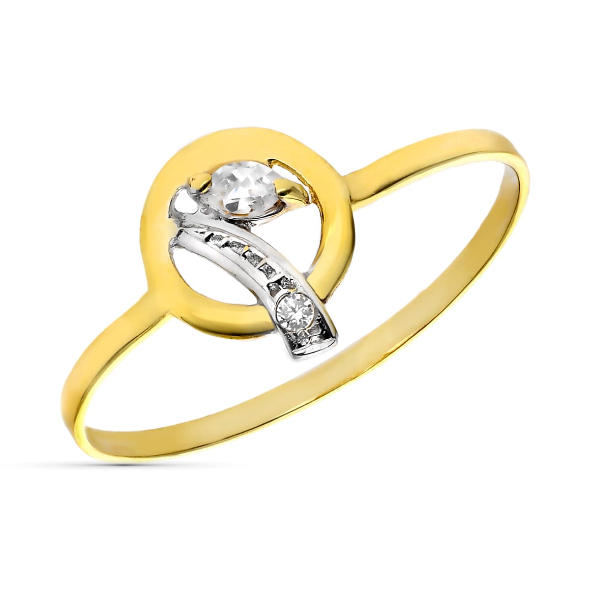 9K SORTIJA ORO BICOLOR MOTIVO RENDONDO CON CIRCONITAS, ANCHO: 9 MM
