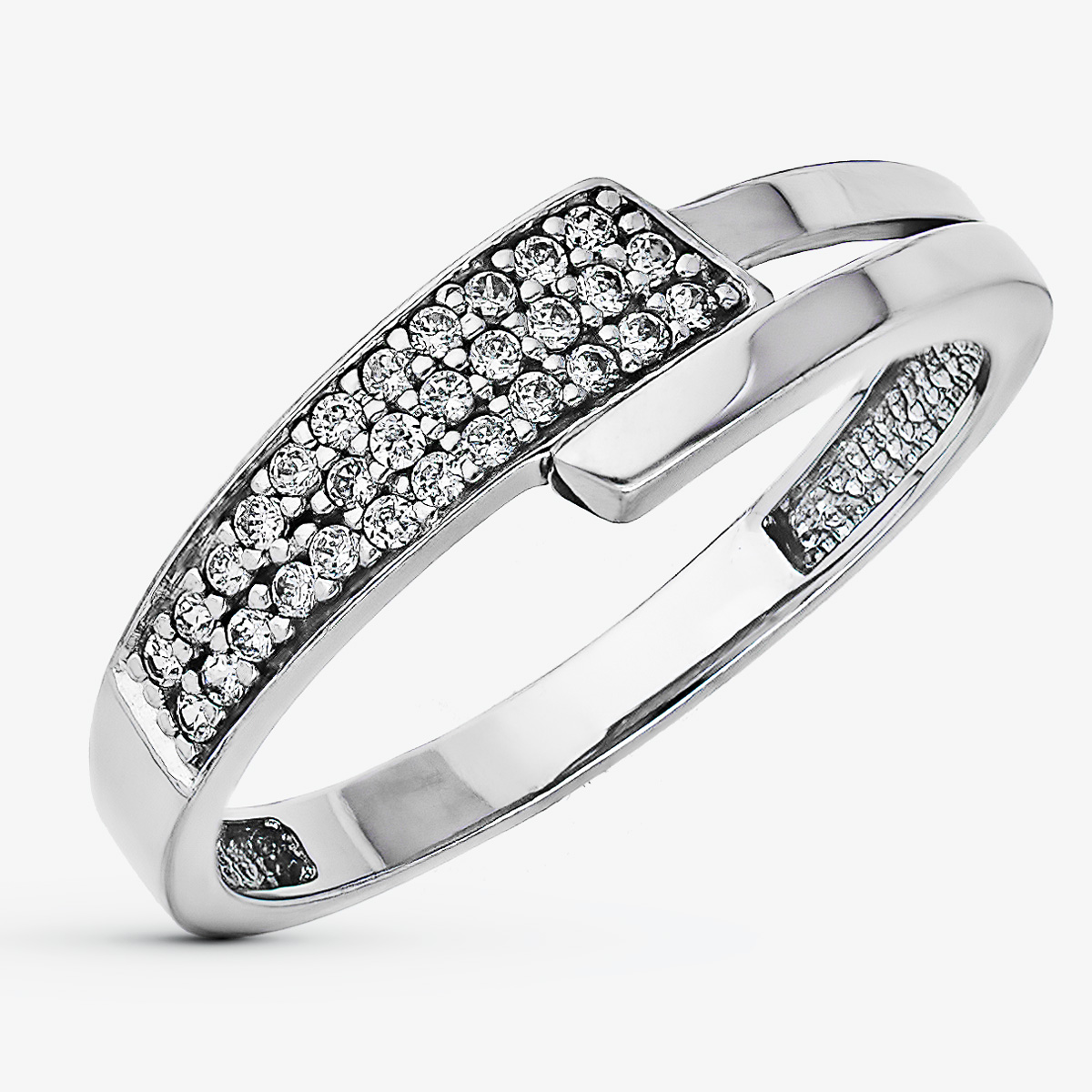 9K SORTIJA ORO BLANCO CALADA CON CIRCONITAS, ANCHO: 6 MM