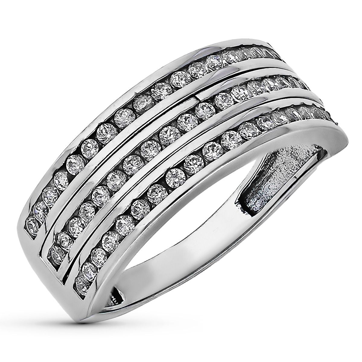 9K SORTIJA ORO BLANCO TRES CARRILES CON CIRCONITAS, ANCHO: 8 MM