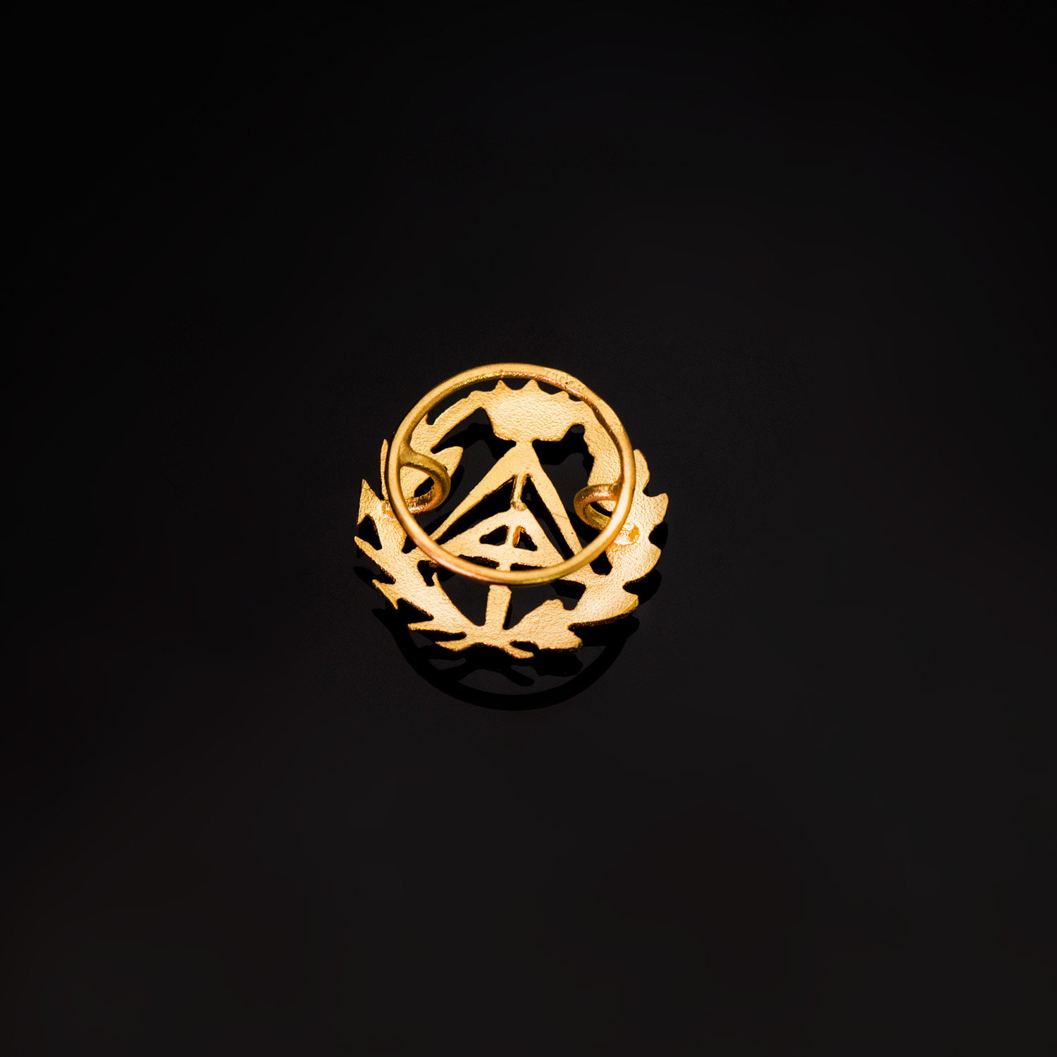 18K INSIGNIA ORO AMARILLO APAREJADOR ( ARQUITECTO TECNICO )16 X 15 MM