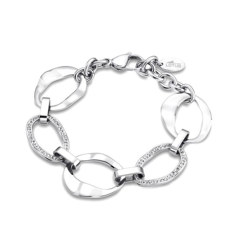 Pulsera para mujer lotus style LS1672-1/1. Se trata de una pulsera fabricada integramente en acero sólido de gran resistencia. La pulsera se puede ajustar mediante unas asas.El cierre es de acero tipo mosquetón. La pulsera consta de unos eslabones lisos y otros con cristales de swarovski. Este producto se entrega en su estuche original lotus style y envuelto en regalo a petición del cliente totalmente gratuito. Ademas este modelo dispone de collar y pendientes a juego.