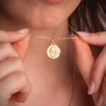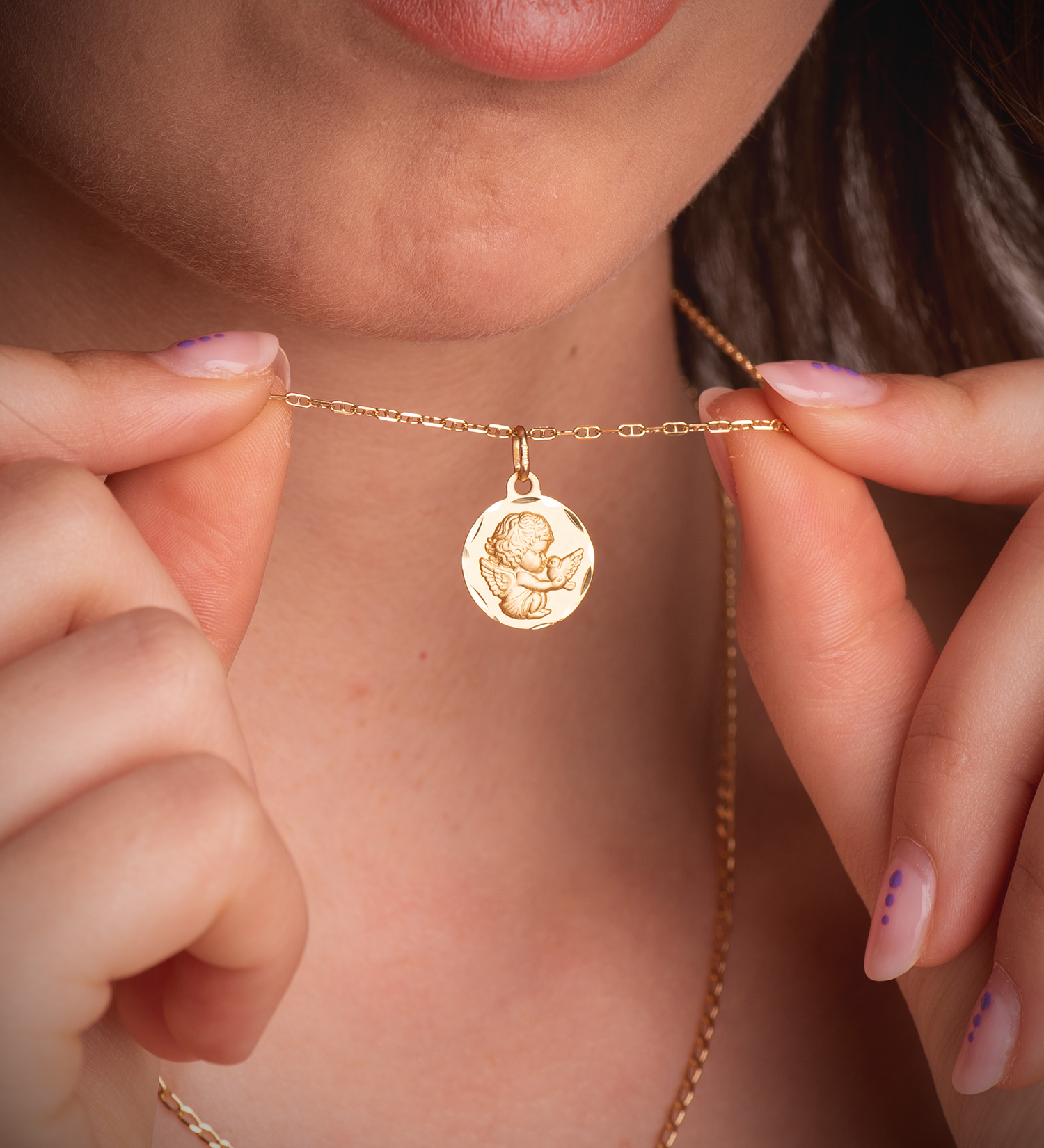 18K MEDALLA ORO AMARILLO ANGELITO BURLON CON PALOMA TALLADA 16 MM