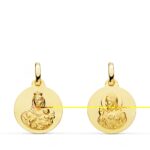 18K ESCAPULARIO ORO AMARILLO LISO VIRGEN DEL CARMEN CORAZON DE JESUS 14 MM