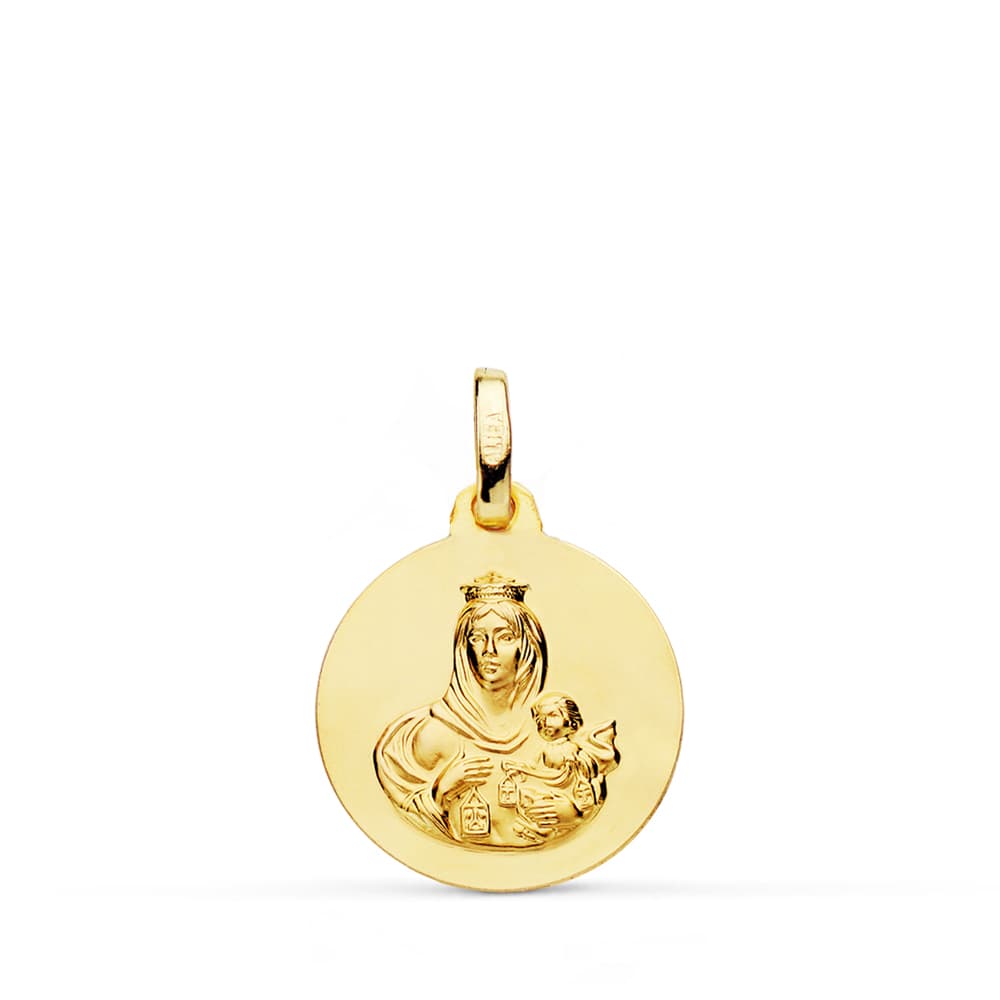 18K ESCAPULARIO ORO AMARILLO LISO VIRGEN DEL CARMEN CORAZON DE JESUS 16 MM