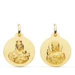 9K ESCAPULARIO ORO AMARILLO TALLADO VIRGEN DEL CARMEN Y CORAZON DE JESUS 20 MM