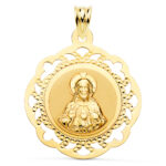 18K ESCAPULARIO ORO AMARILLO VIRGEN DEL CARMEN Y CORAZON DE JESUS CALADO BRILLO 31 X 27 MM