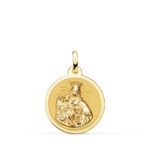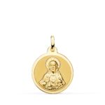 18K ESCAPULARIO ORO AMARILLO VIRGEN DEL CARMEN Y CORAZON DE JESUS EN BRILLO 18 MM