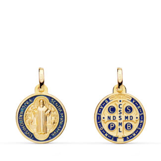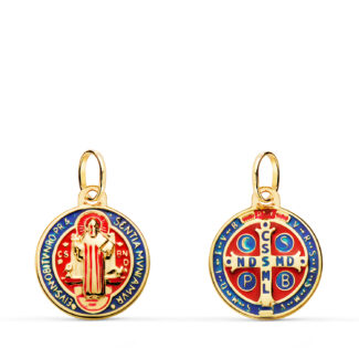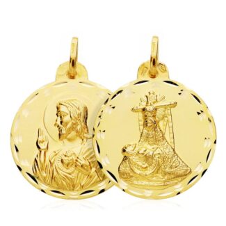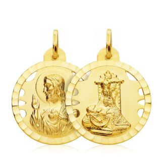 18K ESCAPULARIO ORO AMARILLO VIRGEN MACARENA Y GRAN PODER TALLADA 16 MM