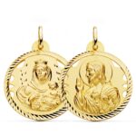 9K ESCAPULARIO ORO AMARILLO HELICE CALADO VIRGEN CARMEN Y CORAZON DE JESUS 28 MM