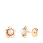 18K PENDIENTES ORO AMARILLO FLOR CALADA CON PERLA 3MM. MEDIDA: 6 MM.CIERRE TUERCA